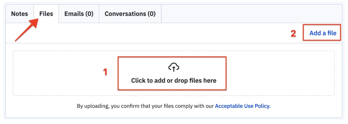 1. Clicking the Action button dropdown at the top right, then click “Add a file” to choose files from your computer.