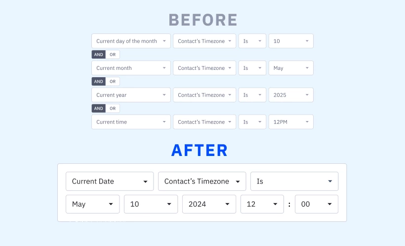 The Current Date/Time conditions and Wait Steps will offer greater flexibility, making your workflows smoother, faster, and more aligned with your goals.