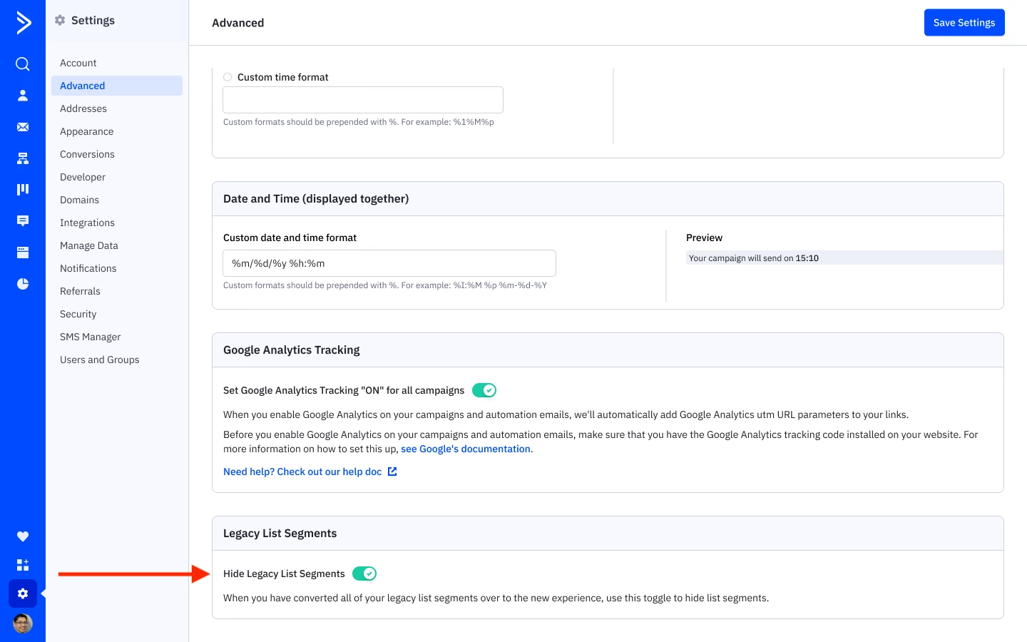 With the new segment experience, segments are no longer tied with lists and can be manage from the segments page in the navigation menu. To organize your segments, convert your most used segments by clicking “Convert to Segment”. The segment will appear in the new overview page. Afterward, you can toggle “Hide Legacy List Segments” in advanced settings to archive any old segments.