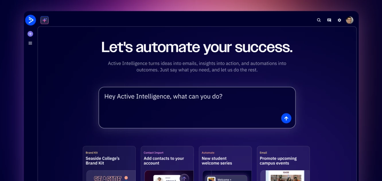The moment you log in, Active Intelligence is ready to help you create campaigns, analyze performance, and answer questions about your marketing—no more hunting through menus.