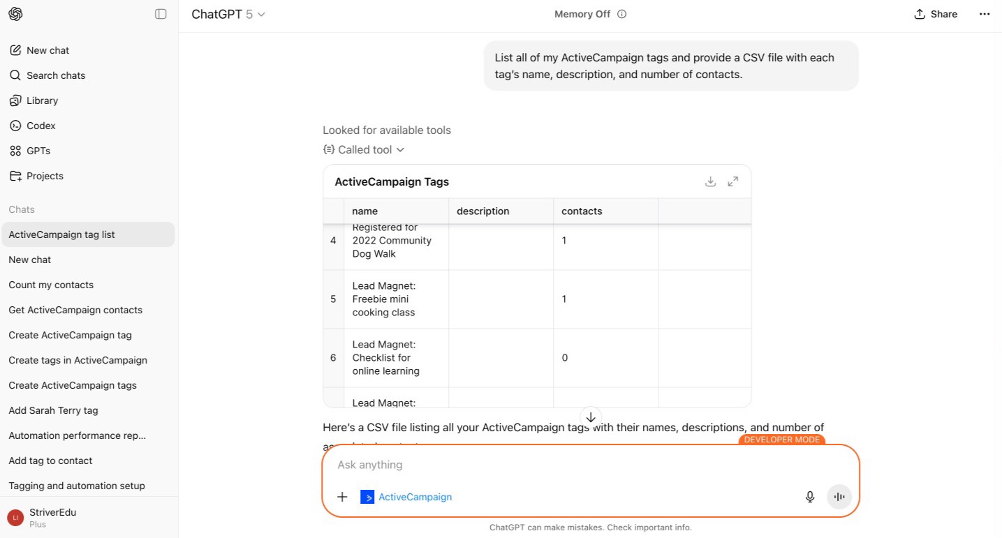 If you use Claude or ChatGPT, you can securely connect ActiveCampaign for better chats! Here’s a great prompt to try out: